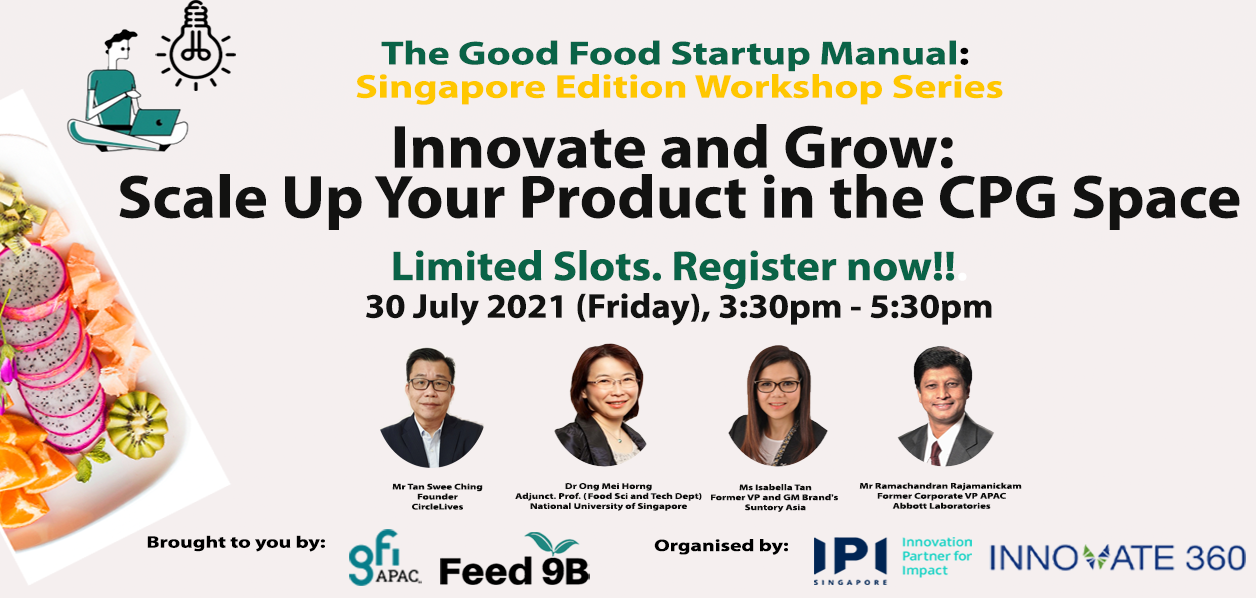 IPI and Innovate360 will be organising a workshop on the topic of consumer packaged goods and scaling up products, particularly in the Asia Pacific (APAC) region. This workshop is an extension of the Good Food Startup Manual: Singapore Edition, a collaboration between The Good Food Institute APAC and Feed 9 Billion, of which IPI and Innovate360 are partners.