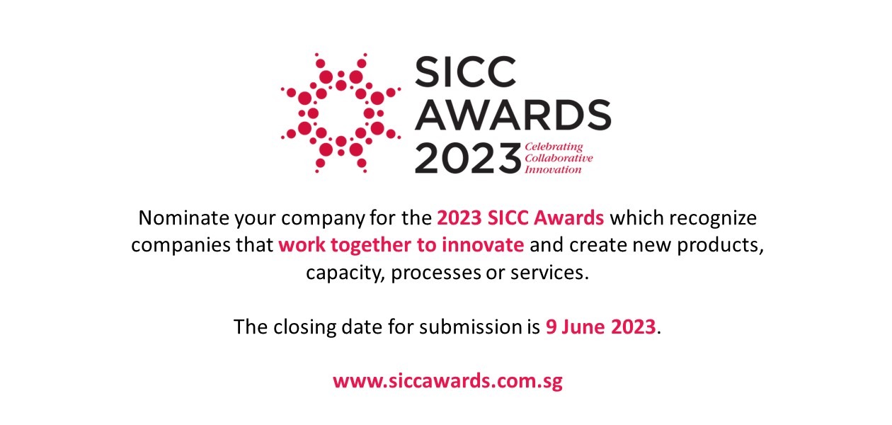 Visit www.siccawards.com.sg for full details of the awards categories and submit your nomination no later than 9 June 2023.