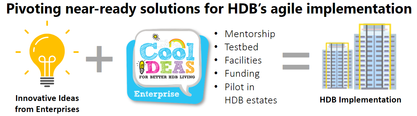 Cool Ideas Enterprise is an open innovation platform for innovators to co-develop solutions that improve the living environment and residents’ quality of life. We are looking for solutions in five focus areas – Energy, Urban Greenery, Living Environment, Water and Waste, and Building Technology – that can be piloted in our Living Labs island wide. Participants can benefit from funding support, mentorship, and access to facilities.