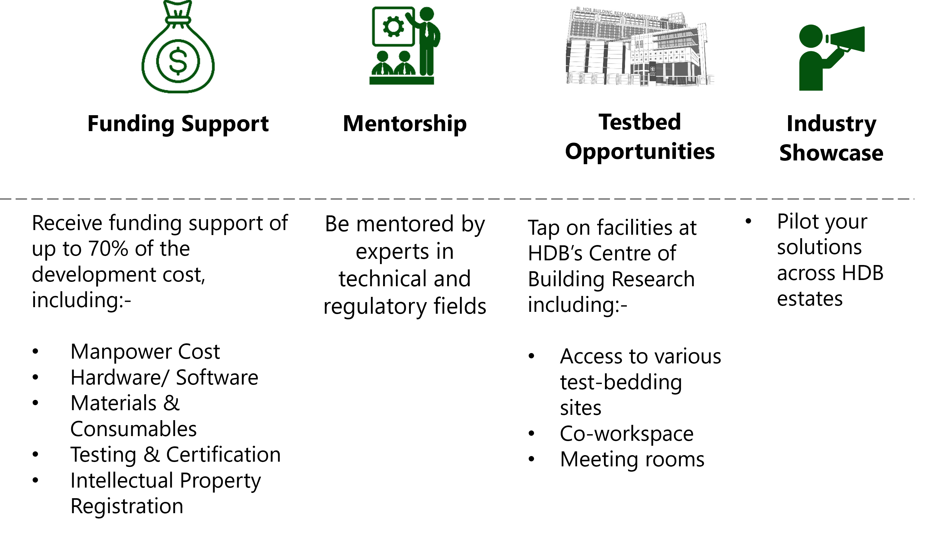 HDB is looking out for new, innovative and cost-effective solutions to ensure compliance and enhance daily accessibility for residents. Solutions would contribute towards a built environment that promotes residents’ physical, mental and social well-being, and create healthy towns for people of all ages.