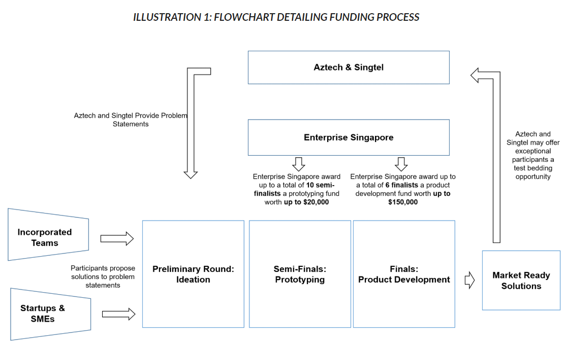 At the end of the qualifying round, up to 10 semi-finalists (startups, SMEs, or newly incorporated teams) will be selected. Aztech and Singtel, can select up to 5 semi-finalists each. Semi-finalists will receive up to S$20,000 (Twenty Thousand Singapore Dollars) of funding (“Prototype Fund”) for the development of a prototype. Semi-finalists may also receive assistance and support from Aztech or Singtel as they develop their prototype.