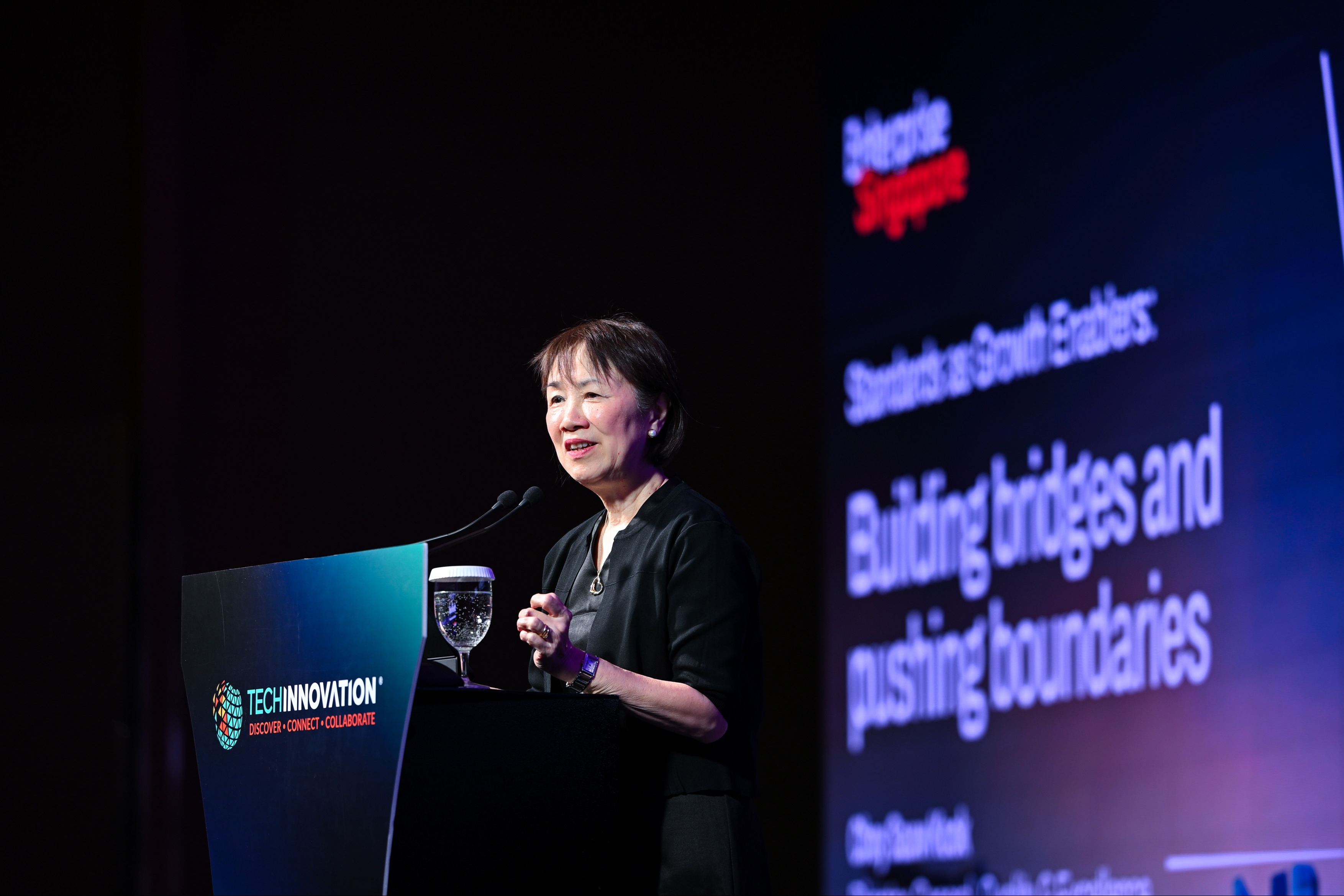 In her keynote, Choy Sauw Kook (Director-General, Quality and Excellence, Enterprise Singapore) emphasised that standards are not just compliance tools but strategic enablers of trust, innovation, and growth. She encouraged enterprises to start with standards that align with their business goals, engage the wider ecosystem, and leverage certification to gain a competitive edge. Ms Choy underscored that standards form the scaffolding of trust and the shared language of global business by helping SMEs and corporates alike scale with confidence, reduce risk, and unlock new market opportunities.