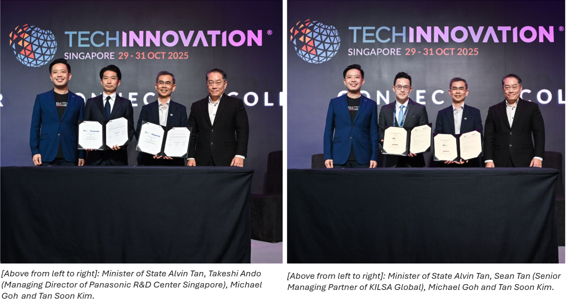 Witnessed by Minister of State for the Ministry of Trade & Industry and the Ministry of National Development, Mr Alvin Tan, and Mr Tan Soon Kim, Deputy Managing Director, Markets of Enterprise Singapore and Chairman of IPI Singapore, Mr Michael Goh, CEO of IPI Singapore, renewed the Memorandum of Understanding (MOU) with Panasonic R&D Center Singapore (left picture) and signed a new MOU with KILSA Global (right picture), a global business enabler working closely with the Seoul Business Agency and Seoul Startup Hub. These partnerships deepen IPI’s global innovation network and reaffirm our commitment to empowering local enterprises by providing access to Japanese and Korean technologies, fostering co-innovation and new market opportunities. |