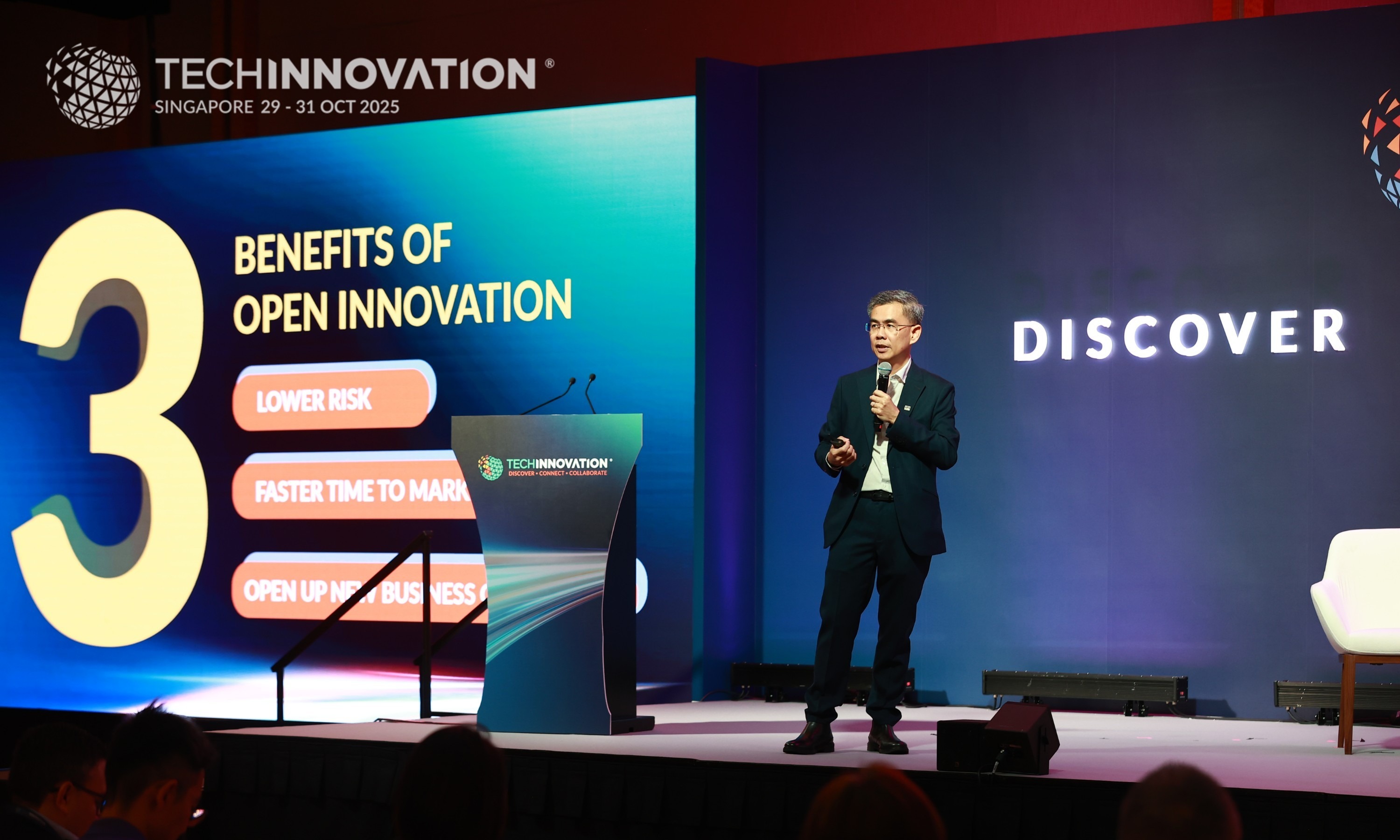 In his keynote, Kotaro Matsuo, the General Manager of Business Development, Panasonic R&D Center Singapore, shared how the company is advancing open innovation to address global and societal challenges. Through its partnership with IPI Singapore, Panasonic has published over 40 technologies on IPI Singapore’s Innovation Marketplace, leading to more than 100 business engagements and several ongoing projects. He also highlighted the Japanese Corporates Technology Innovation (JCTI) Launchpad, a joint initiative developed by IPI Singapore, Panasonic, the Japan External Trade Organisation (JETRO), and N9, which continues to grow with new members such as Murata and Nitto Denko, reinforcing how platforms like TechInnovation foster cross-border collaboration and accelerate technology adoption.