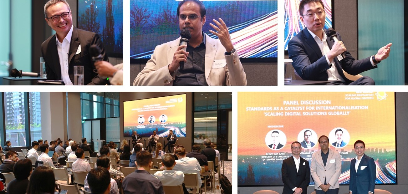 In the final panel, "Standards as a Catalyst for Internationalisation - Scaling Digital Solutions Globally", moderated by Khor Aik Lam, Director of Standards (Manufacturing) at Enterprise Singapore, the focus turned to a critical but often overlooked growth lever: standards and conformance. Panellists Dr Vinayak Prabhu of SynQor, and Joseph Gan of V-Key shared how aligning with international standards not only opened doors to new markets but also strengthened their competitive edge globally.
