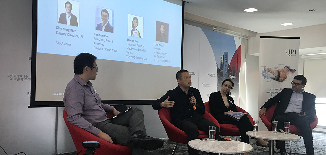 The speakers shared ways to create stronger IP to support their businesses with the adoption of emerging technologies such as AI. In addition, they also highlighted global medical device regulatory requirements, and testing and compliance considerations for healthcare product registrations in Asia. The event closed with a panel discussion on regulations and compliance issues surrounding smart medtech devices and personal and consumer care innovations, moderated by IPI Deputy Director Sim Kung Kiat.