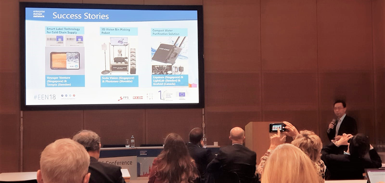 A partner of the Enterprise Europe Network (EEN) Singapore, IPI presented its best practices in using open innovation platforms to catalyse the adoption of technology by SMEs at the annual EEN Conference held in Vienna, Austria on 23 October 2018. Lim Ming Khai, Deputy Director of IPI, shared how SMEs have benefitted from its various open innovation platforms and initiatives. They include the IPI Technology Marketplace, an online database of technology offers and needs from IPI’s global partners; Gov-PACT, a programme for SMEs to offer innovative solutions to address national needs, and TechInnovation, the largest open innovation and technology matching event in Southeast Asia.