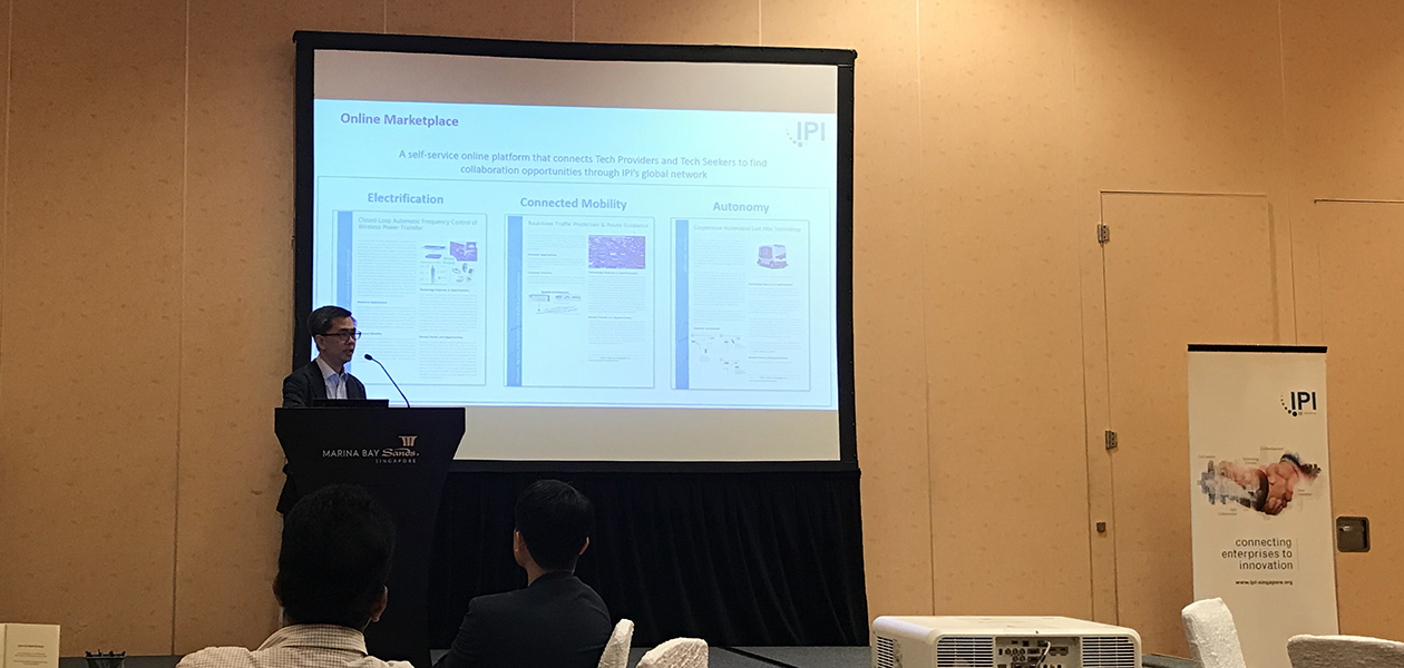 Michael Goh, Deputy Director from IPI, provided insights into how businesses can leverage open innovation to accelerate growth in today’s competitive business landscape. He highlighted one of IPI’s recent technology bundles initiative, a collection of complementary technologies that support enterprises in gaining a broader understanding of emerging technology opportunities on IPI’s Online Marketplace. Curated by IPI, the technology bundle on Future Mobility brings together new innovations that explore the movement of people, goods and other ancillary services, via new modes and concepts of mobility which could be electric-powered, autonomously-controlled, and as a shared and interconnected fleet.