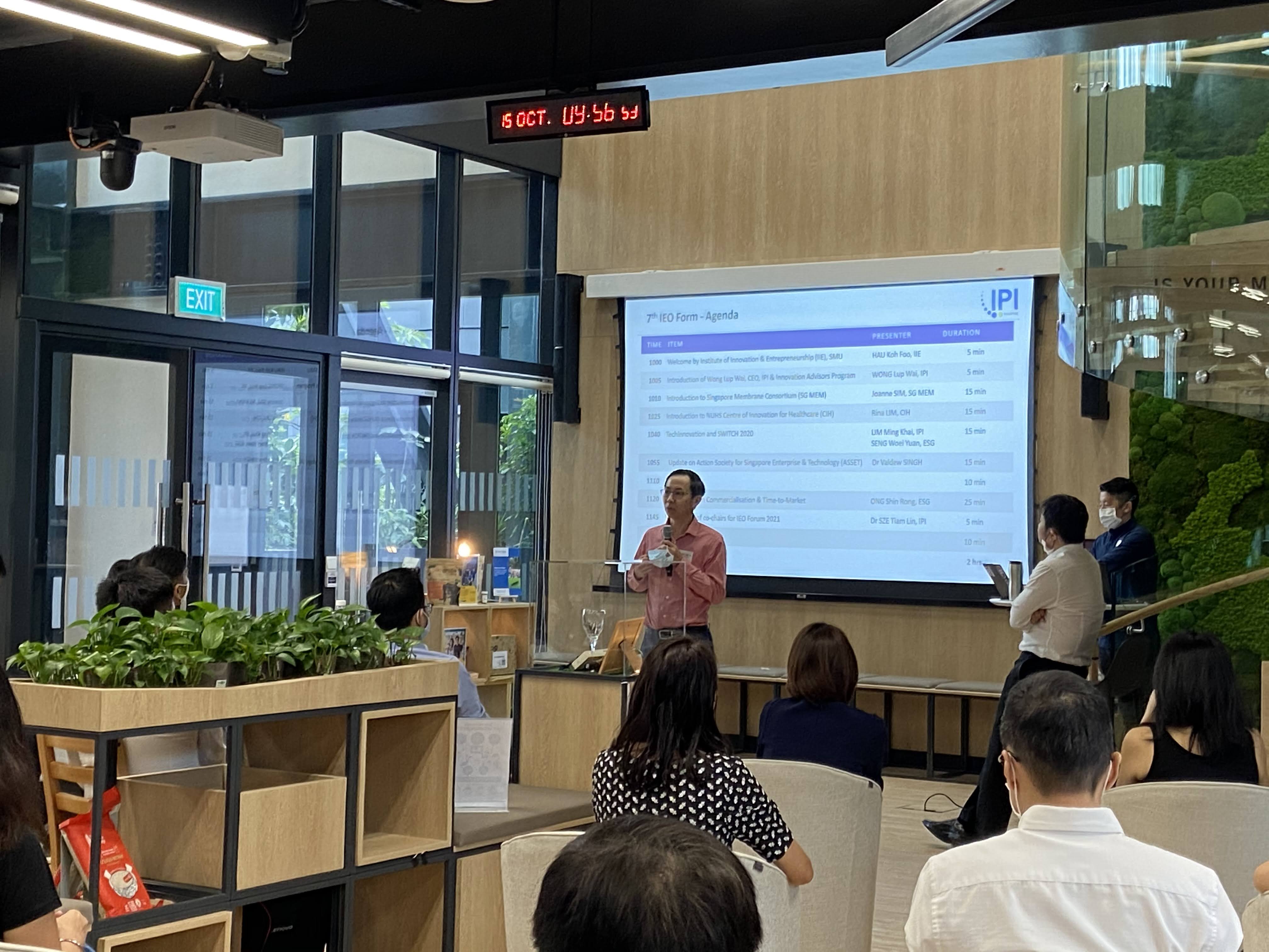 More than 40 representatives from the IEO community and guest speakers from key innovation drivers in Singapore attended the typically biannual event. They learnt about the Innovation Advisors Programme from IPI as well as various engagement models and co-innovation opportunities presented by the Singapore Membrane Consortium and NUHS Centre for Innovation in Healthcare. The programme also included an update on the upcoming Singapore Week of Innovation and TeCHnology (SWITCH) and TechInnovation that took place virtually from 7 to 11 December 2020.