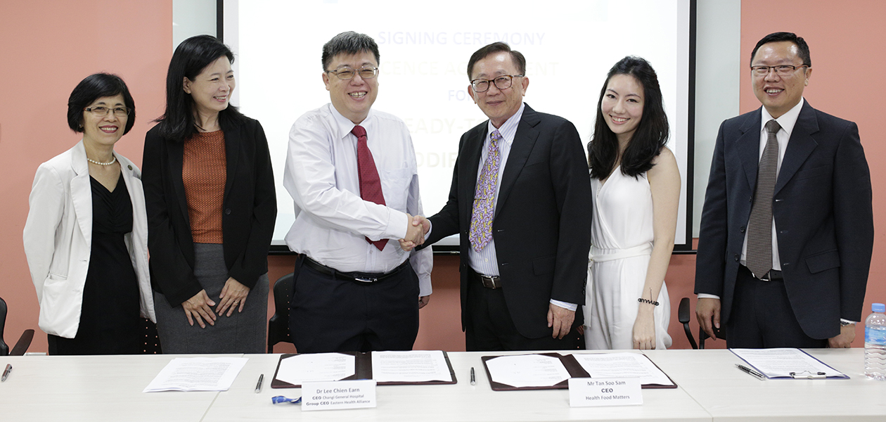 HFM was introduced to Changi General Hospital (CGH) by the National Healthcare Innovation Centre (NHIC) at TechInnovation 2015, a technology-industry brokerage event organised by IPI. CGH had developed an in-house technology to produce texture-modified meals that would be safe and delicious for people with swallowing difficulties. A licensing agreement that was inked between HFM and CGH on 19 September allows HFM to produce and market the products in Singapore, Japan, New Zealand and Australia using the formula and recipes from the hospital. The meals are expected to be available from January 2017.