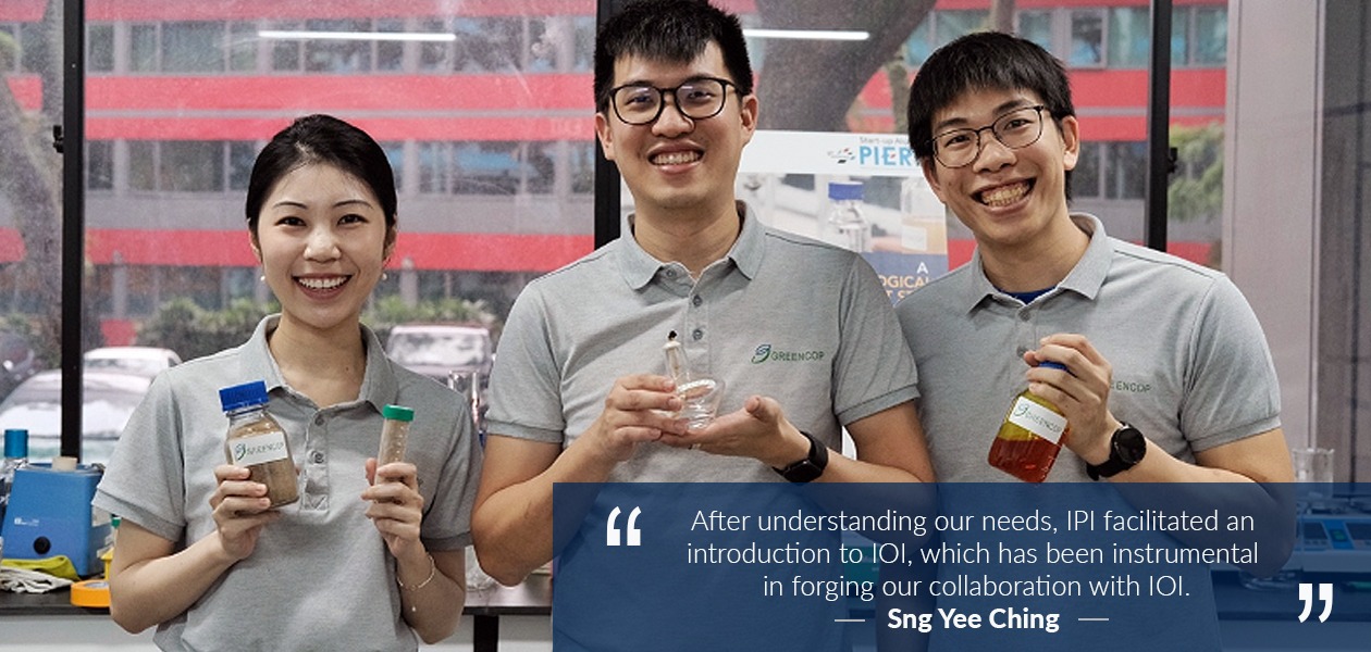 “We worked with IPI prior to our introduction to IOI, where our technology was featured at an IPI-led event "Opportunities for Agrifood Side Stream Valorisation in Asia”. After understanding our needs, IPI facilitated an introduction to IOI. This introduction has been instrumental in forging our collaboration with IOI,” said Green COP Project Director, Sng Yee Ching.