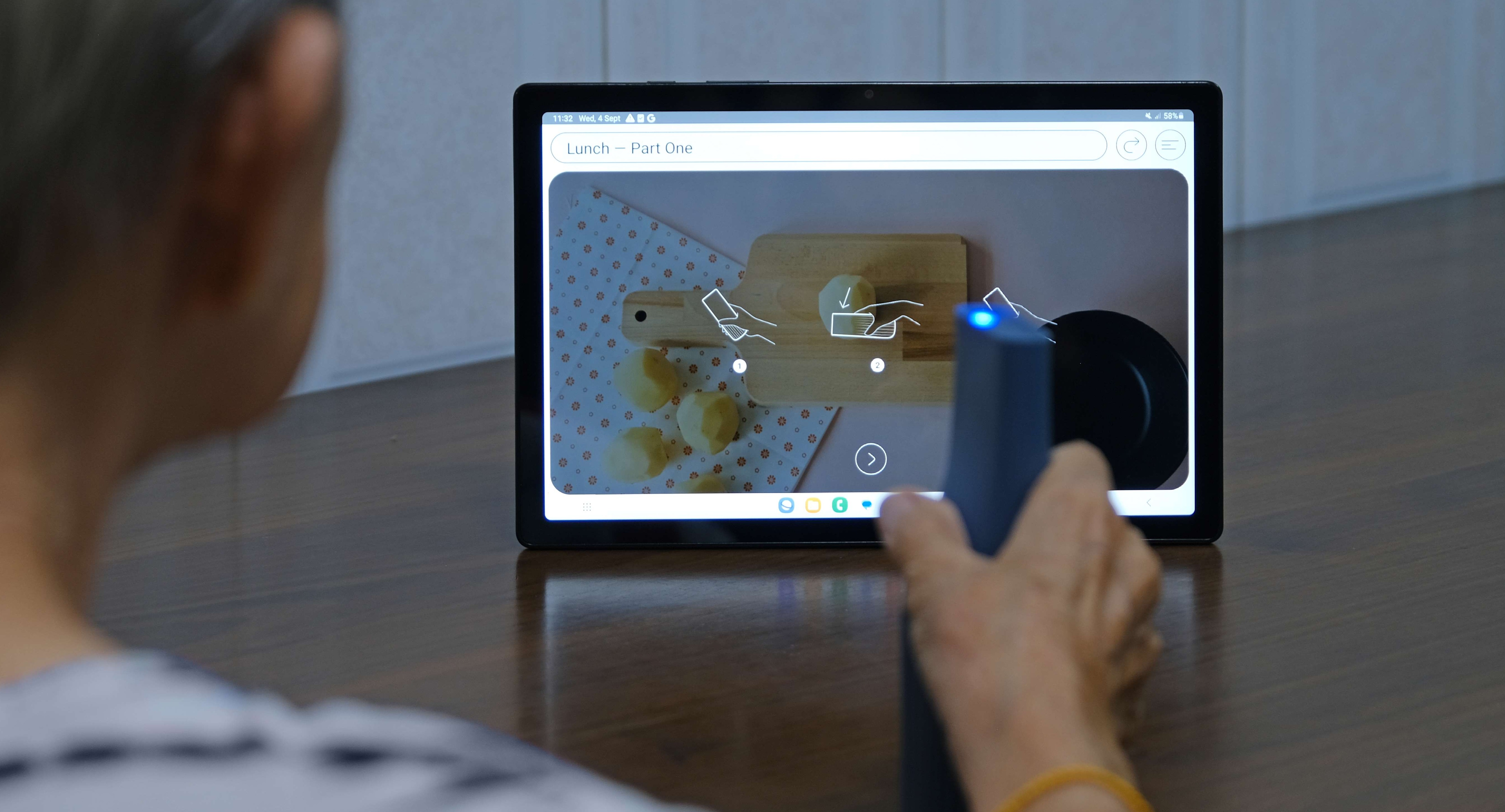 In response to these challenges, this solution offers a novel method to help dementia patients maintain cognitive function through engaging therapeutic activities. The solution is a cognitive stimulation system that leverages motion tracking and multi-sensory feedback to help users recall familiar actions from their daily lives. By recreating activities such as ironing or spreading jam, the device taps into procedural memory, allowing users to re-enact tasks they once performed regularly. This process stimulates recollection, helping to evoke personal memories and improve cognitive agility.