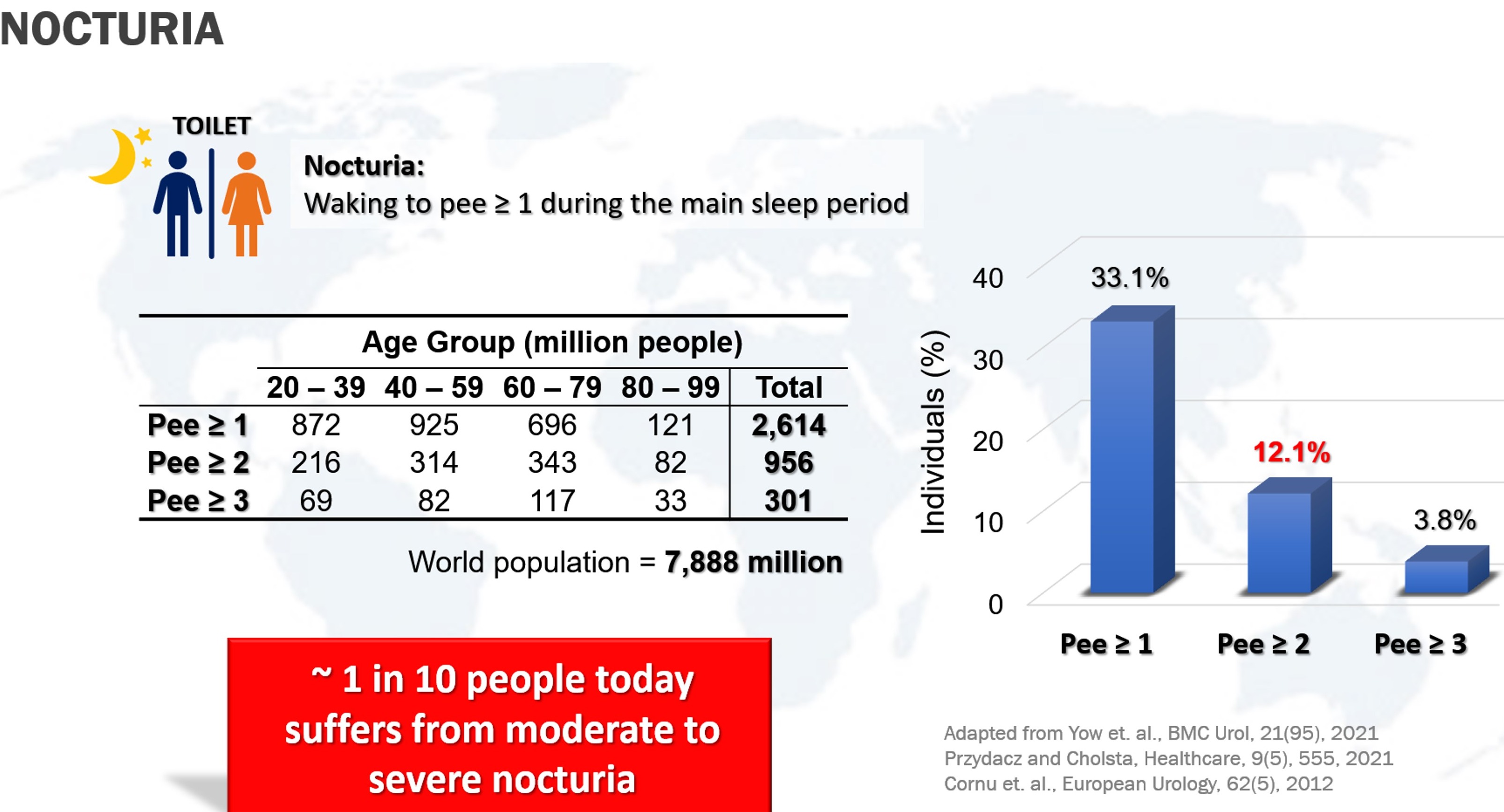 Nocturia is a common urinary complaint where one experience interruption of sleep with one or more times at night to void. The current assessment of nocturia is primarily clinical and relies mainly on patients documenting their own bladder diary to complete a Frequency-Volume Chart (FVC) of volume and times of urination between a 24-to-72-hour period. This conventional way of assessment is a manual and inadequate way of diagnosing nocturia. An individual is diagnosed with nocturnal polyuria if the total urine output at night exceeds one-third of total daily output.