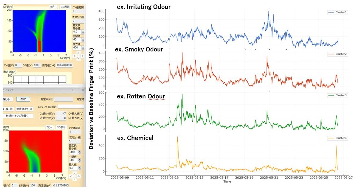 The technology solution is designed to leverage the advantages of FAIMS and MEMS technology to develop the odour sensor system capable of high sensitivity and selectivity while being compact, portable and user friendly. With the continuous real-time multi-gas analysis on site, the system provides detect, measure and analyse odours coupled with AI based analytics, such as odour profiling, for quick insightful decision-making. With capabilities to objectively visualise and evaluate odours in real-time, it opens the future of odour sensing across various use-cases, from potentially detecting new hazardous odours for public safety to disease diagnostics via breath analysis.