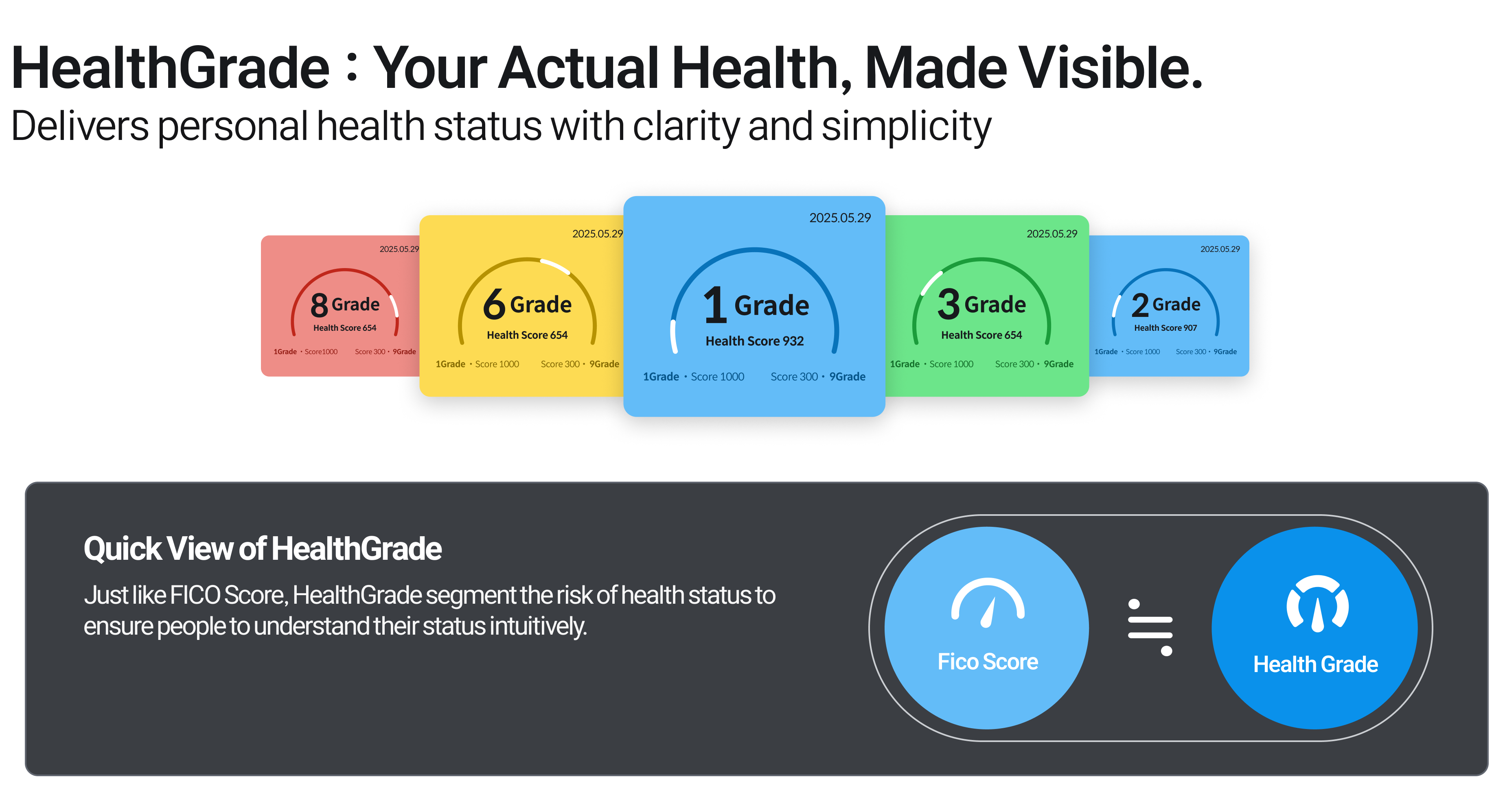 This technology known as HealthGrade quantifies individuals health status based on digital health data such as health check-ups and medical usage history. By using it like a credit score in the credit market, HealthGrade aims to innovate insurance pricing and underwriting. It personalizes underwriting decisions beyond static rule-based methods. HealthGrade is currently used by insurers and helps develop health-promoting products offering financial rewards for healthier behaviors. This creates mutual value for insurers and consumers.