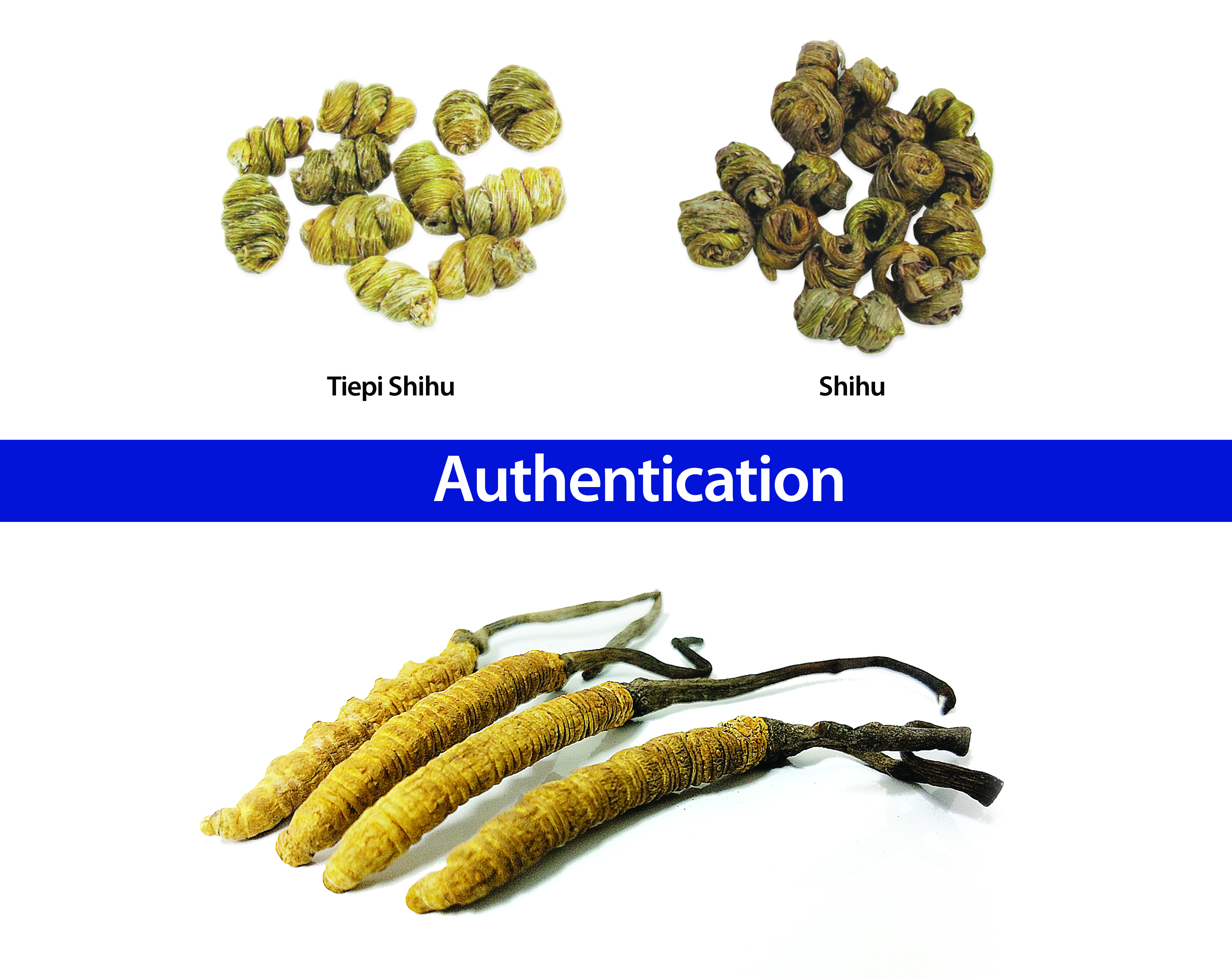 Dendrobium is one of the largest genera in the plant family Orchidaceae, and more than 1,100 species of Dendrobium have been identified. Among them, Tiepi Shihu is traditionally recognised as the best Shihu for tonic purposes, such as nourishing the stomach, protecting the throat and eyes. The uncharacteristic appearance and high price of Tiepi Shihu could lead to the occurrence of adulterants, confusion of species and counterfeits. Therefore, authentication and quality analysis of Tiepi Shihu is crucial for ensuring safety and efficacy.
